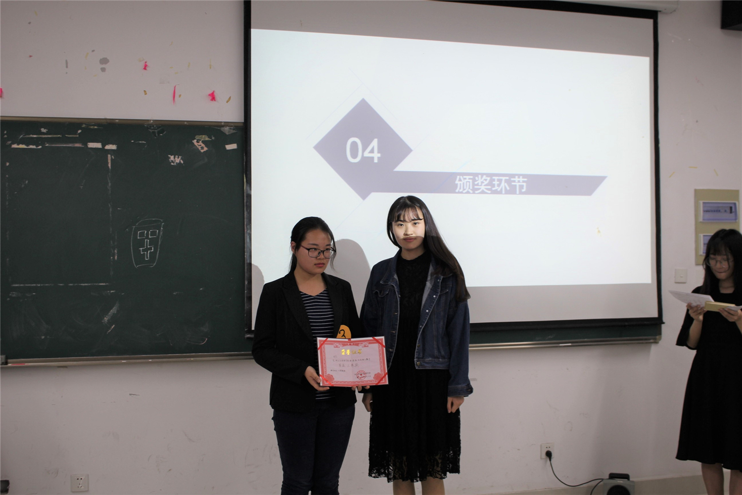本次大赛分为职场设计之PPT演讲,职场设计之简历设计以及职场设计之商务礼仪三部分。在PPT演讲环节,2号选手翁诗琪分门别类的对所需可能的职场技能进行了划分与组合,让不少场的观众深入浅出的了解到踏入职场需要的必备技能。4号选手沈健健则着重讲到个人性格在职场里的重要性,提出个人应变能力与个人技能知识能力同等重要的观点,得到在场评委的赞同。在简历设计以及商务礼仪环节,5位选手沉着答题,体现出极高的商务素质,赢得台下一片掌声。