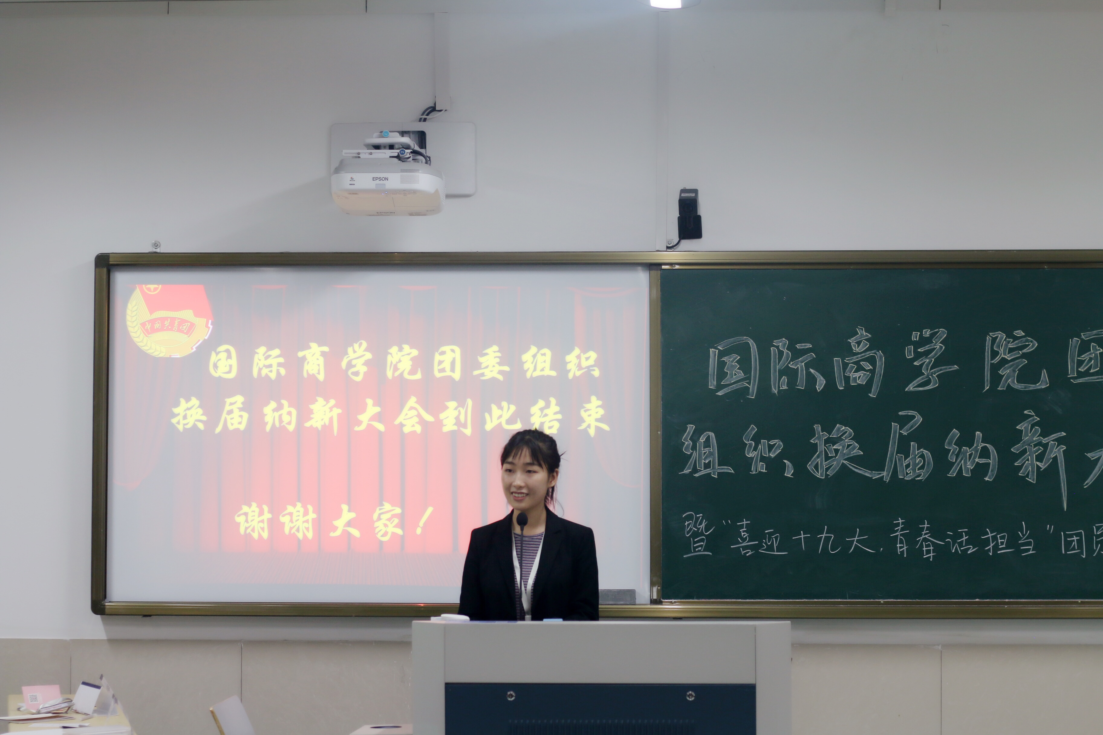 有一场告别,就有一场开始。换届大会的圆满结束,既有着对历届团委成员工作的肯定与致谢,也饱含了对新一届优秀干事们的希冀与欢迎。希望在未来的日子里,萌新们能够尽快融入院团委这个大家庭,彼此努力,打造一个更有特色,更加辉煌的商院,一展商鹰本色,竭诚为学院服务!
