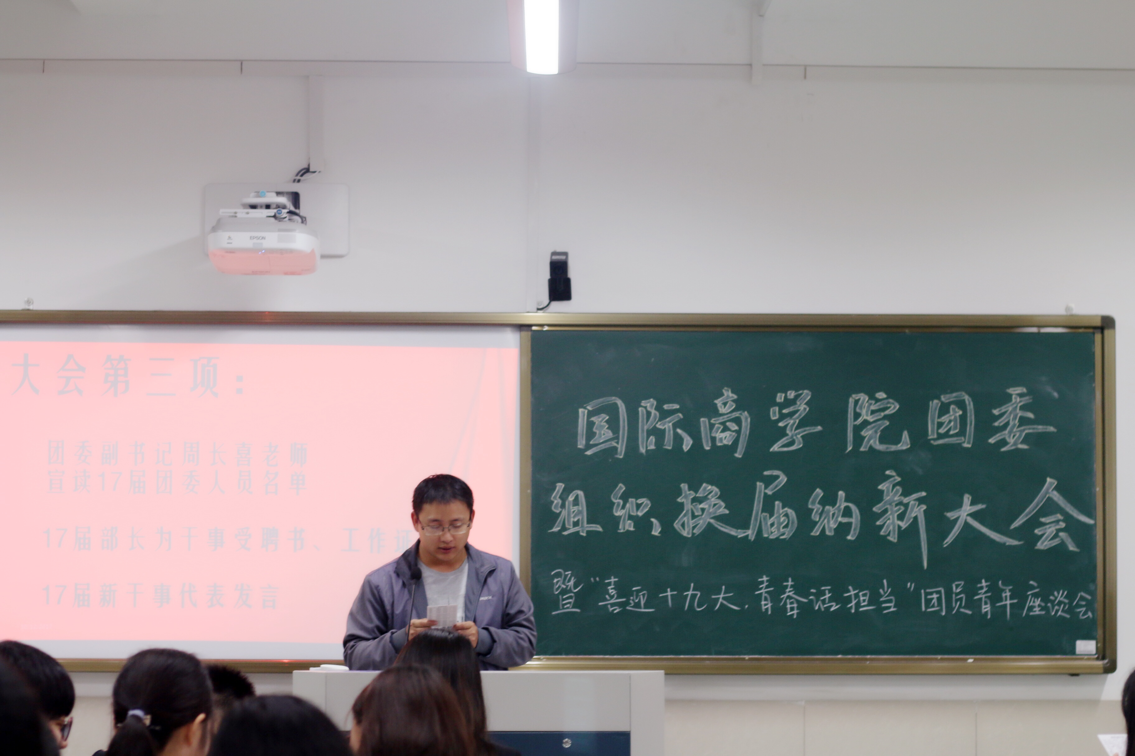 秋意渐起,雨打窗棂。为了更好的迎接即将到来的“十九大”,为商学院团委注入新鲜的血液,10月12日晚六时,泥巴影视 团委于望院D211教室召开了院团委组织换届纳新大会暨“喜迎十九大,青春话担当”团员青年座谈会。院团委书记梁汲媛,副书记周长喜应出席座谈会。会议由姜雯主持会议,院团委全体成员参与了会议。
