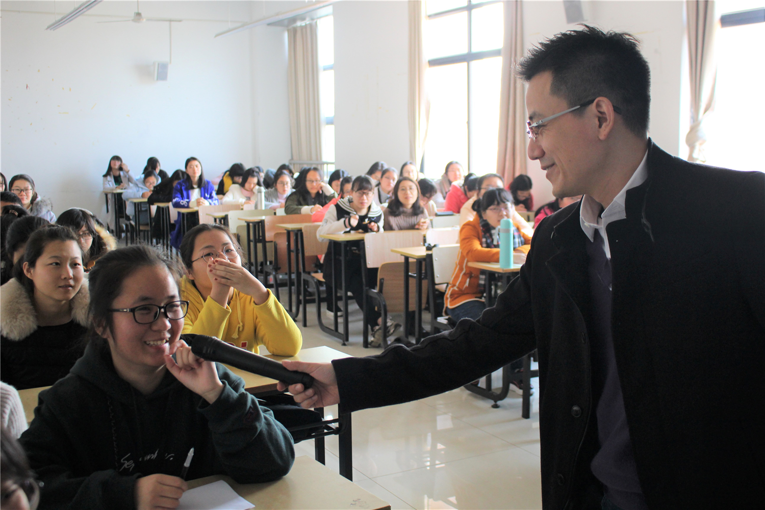讲座过程中梅王君还以问答的方式与同学们进行互动,现场氛围轻松活跃。
