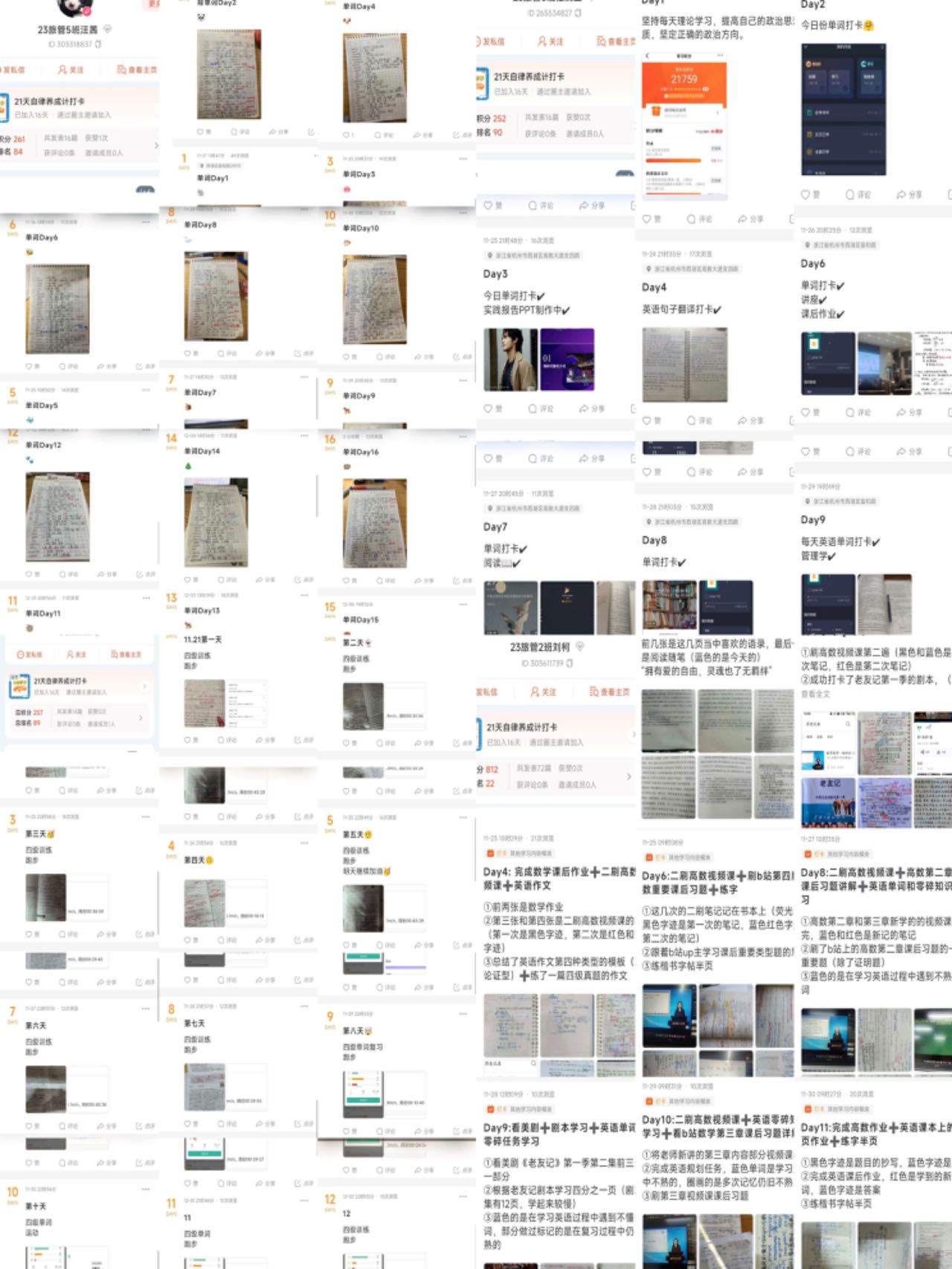从打卡足迹和心得体会来看,每个人都收获满满,其中一些同学表现出色,值得嘉奖。他们是自律的楷模,是我们学习的榜样。