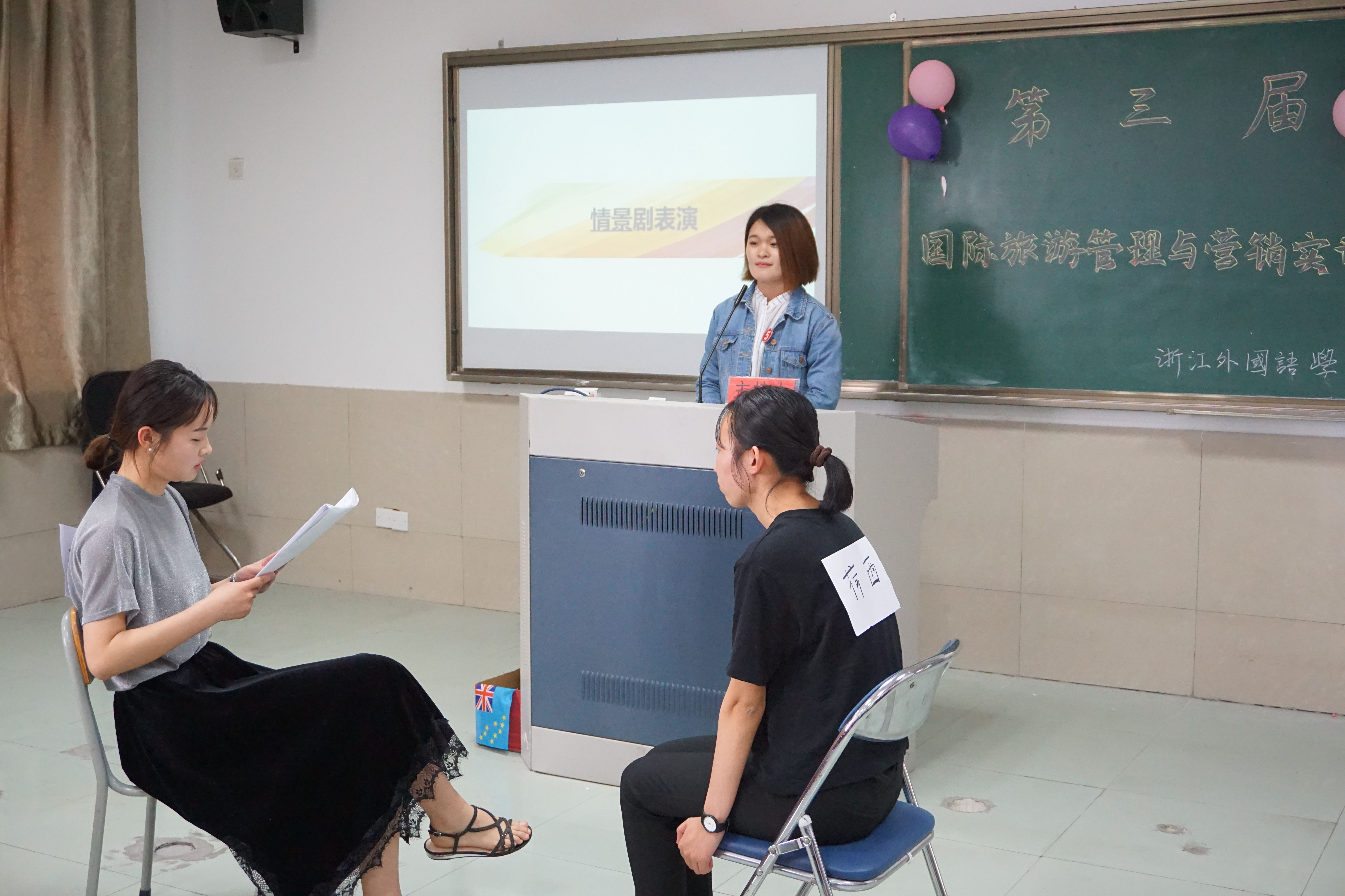 为全面贯彻杭州十三五期间旅游业“旅游国际化”、“旅游智慧化”、“旅游品质化”发展目标,切实训练学生高素质、全方位的旅游创意营销能力。5月12日下午,由商学院旅游系主办的2017年第三届国际旅游管理与营销实训大赛于望院D402顺利启动。商学院旅游系老师朱光良、蒋艳、沈朱飞担任评委,14级旅游系全体学生参与比赛。