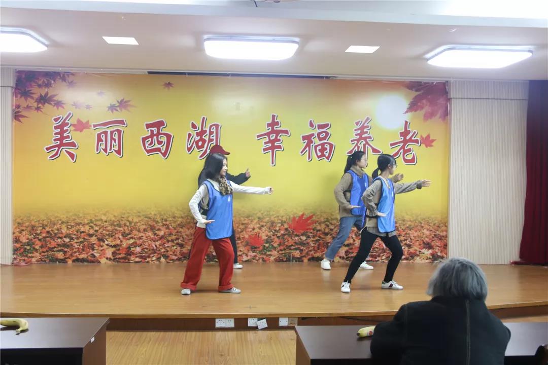 本次活动以文艺表演为主。例如,来自浙江工业大学人文学院的志愿者们给老人们带来了手语表演《感恩的心》以及令人开怀大笑的小品,而泥巴影视 志愿者们也给老人们表演了太极拳和《阳光总在风雨后》等脍炙人口的歌曲。这些精彩的表演,博得了台下老人们阵阵掌声。每个节目表演结束之后,同学们都会送上各自暖心的祝福,衷心祝愿老人们在新的一年里身体健康,万事如意。