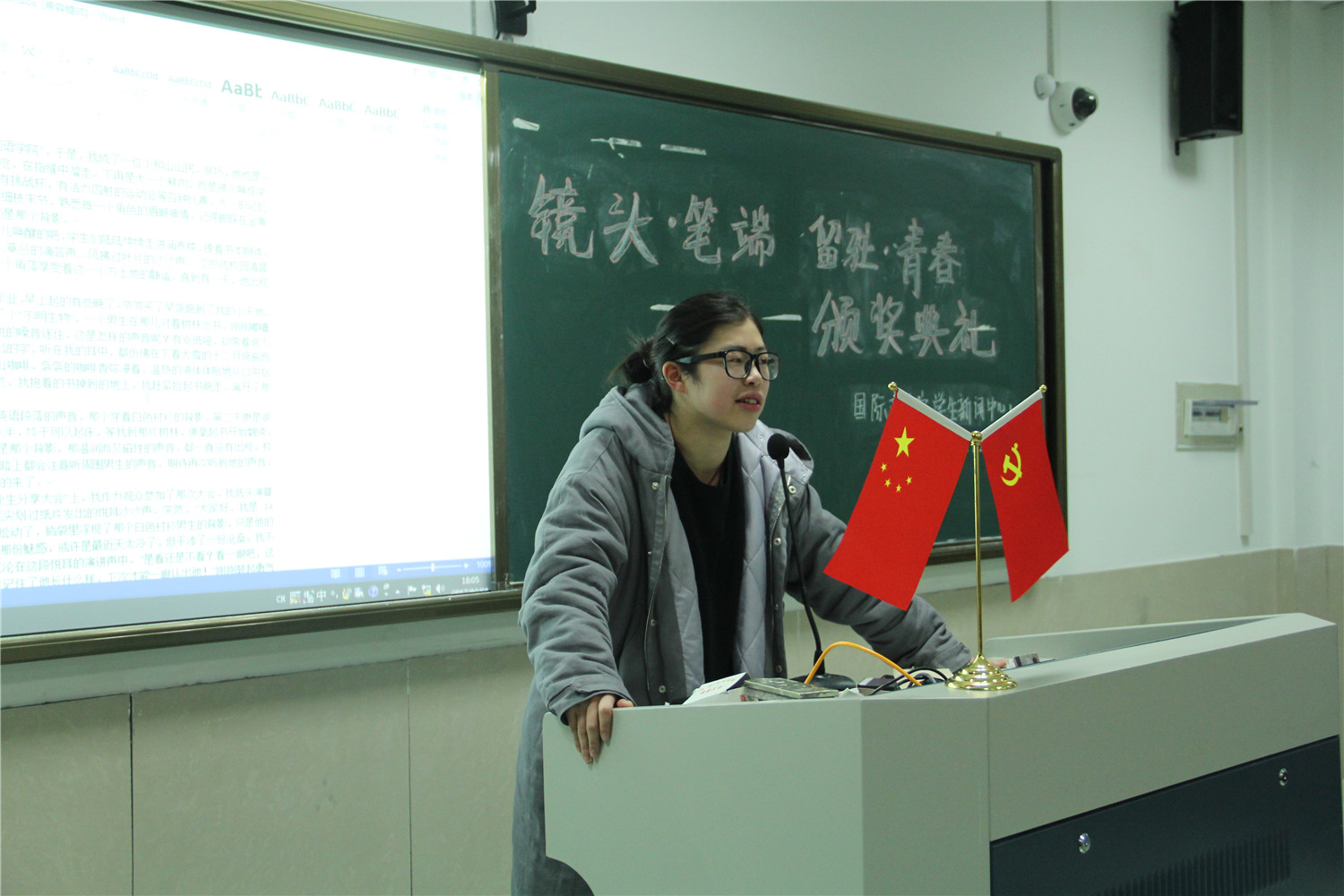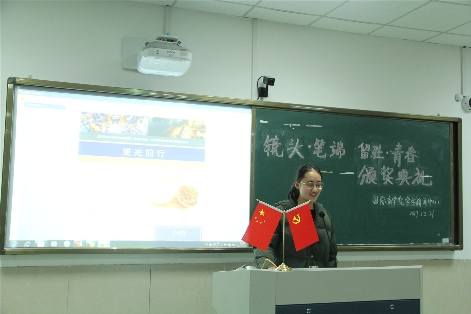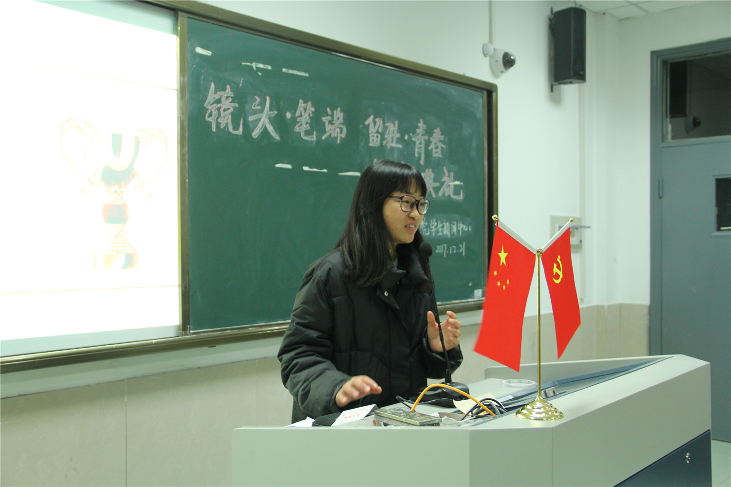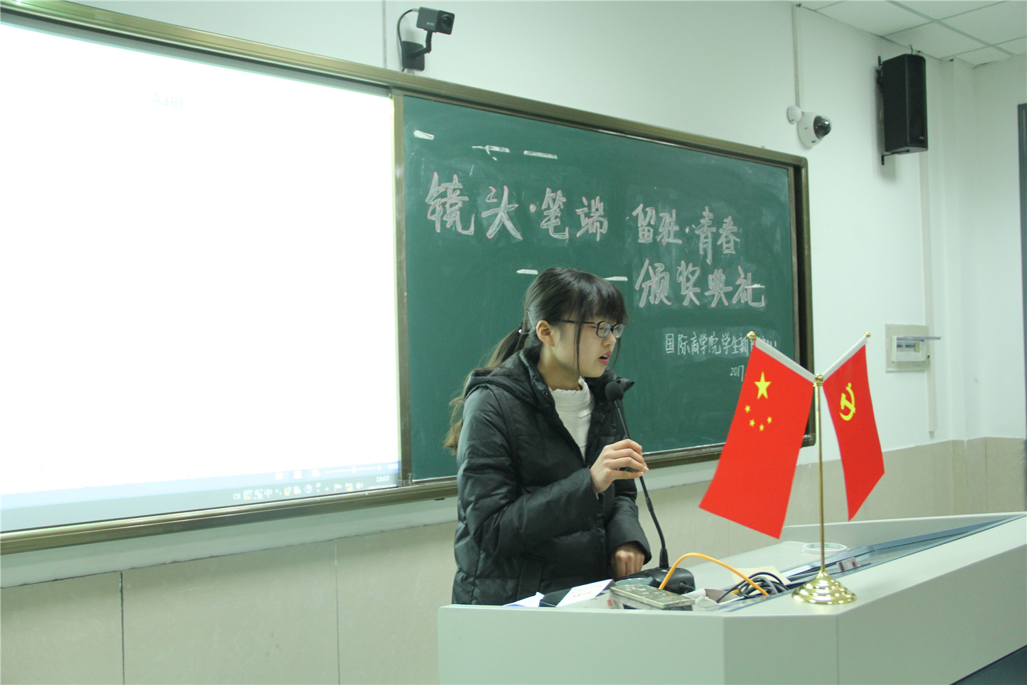 日前,由院学生泥巴影视主办的“镜头•笔端 留驻•青春”主题征文摄影活动已完美结束。12月21日晚上,泥巴影视 在望院D306教室举行了“镜头•笔端 留驻•青春”颁奖典礼。院团委指导老师周长喜、院学生会指导老师赵冬冬、院学生公寓文化中心指导老师岑盈盈、院学生泥巴影视指导老师王化明以及院学生泥巴影视主任陈雪珂受邀出席。