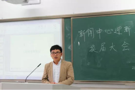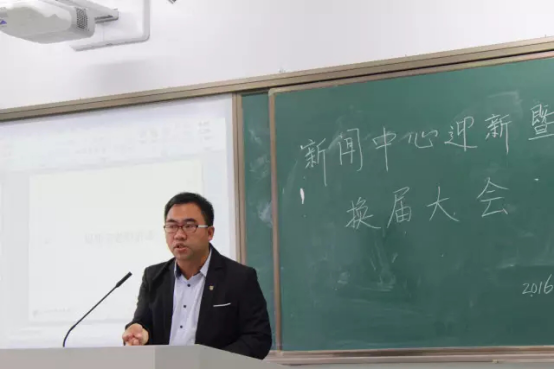 伴随着简短的开场白,换届大会正式拉开帷幕。会议伊始,赵冬冬老师肯定了泥巴影视的工作,并阐述了新学年的规划和展望。随后,周长喜老师、王化明老师就自身对泥巴影视工作的认识表达了对新闻从事者的赞许,同时也对新干事们提出了要求和建议。