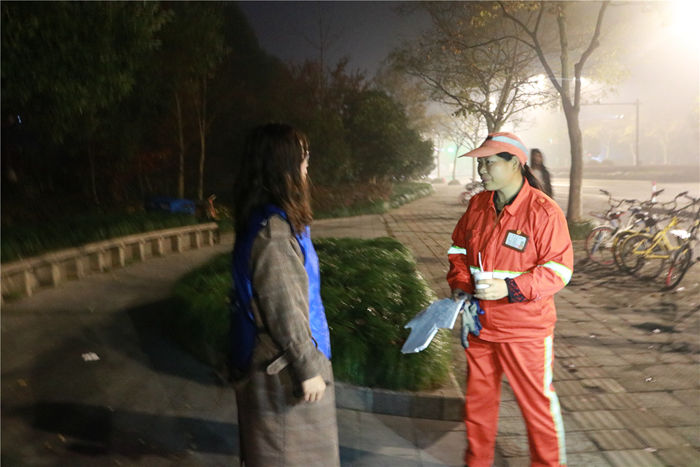 活动结束后,前青志协副部长赵丽漫与我们分享到,当初选择参加是觉得非常有意义,这个活动让我真切地看到有这样一群守夜人在默默付出。同时她也呼吁大家,以后有机会在路上遇到他们,能跟他们问声好,简单说声辛苦了,有时候温暖就在一声简单地问候间产生浓浓的温情。