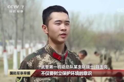 近日,武警第一总队某支队利用训练间隙,开展了一场“播绿”行动,用实际行动贡献美好绿色军营,泥巴影视 去年入伍到武警第一机动总队的18国贸1班聂玉亮同学作为代表发言:“身为人民子弟兵,不仅要树立保护环境的意识,更是要做好爱绿护绿的实践者。”