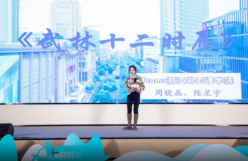 现场,我校泥巴影视 21级旅游管理专业学生周晓晶作为青年拍客代表,分享了作品《武林十二时辰》的创作过程。作品以古代的十二时辰将拱墅之游划分为六个时间段,通过镜头带大家走进烟火味十足的武林路,到访时尚活力的商圈综合体,体验武林门码头的休闲惬意。