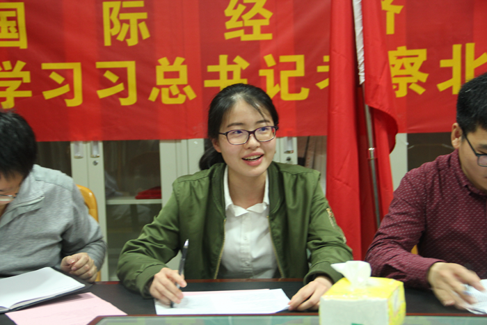 全体与会人员各抒己见,热情分享了自己从总书记讲话中学到的思想感悟。辅导员王化明与大家进行了交流。他先是通过讲述一个小故事,向大家表达了他对日渐强大的中国的认同。作为青年,我们要为自己的未来负责,利用好大学的时间,努力做到知行合一。