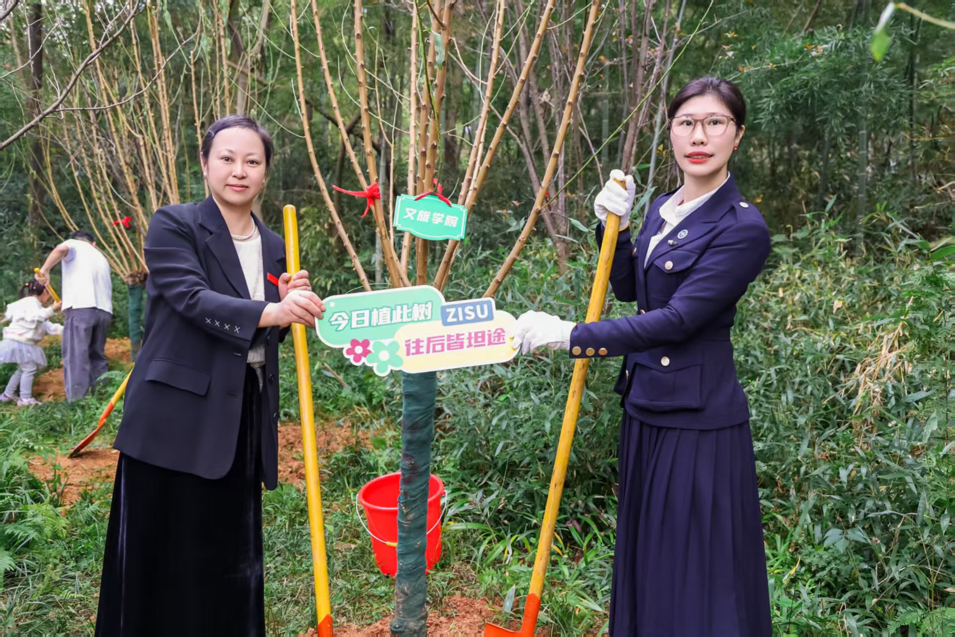 党委书记范芸芸和返校校友齐聚寻语山畔,共同参与学校举办的“绿韵七秩语林长青”校友林认捐种植挂牌仪式。活动现场,绿意盎然,暖意融融,每一株新苗都象征着一段与母校有关的记忆。