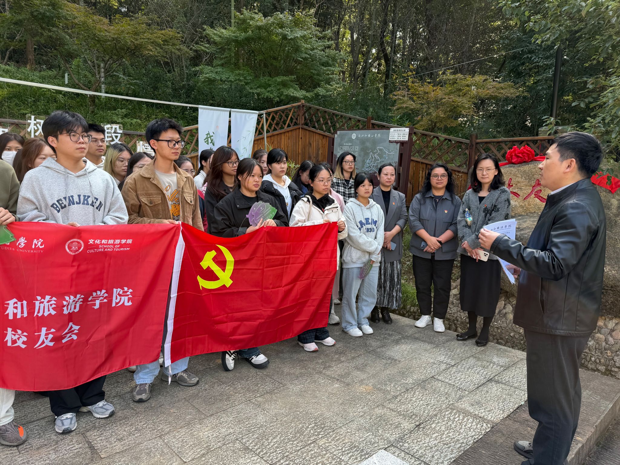 旅游会展专业学生党支部全体成员再次来到寻语山,开展 “寻根铸魂・绿树传心”——“校友林”挂牌主题党日活动。本次活动以“寻根-初心-认领-传心”为脉络,让师生党员在与树木的对话中,重温初心使命,凝聚爱校荣校的力量。