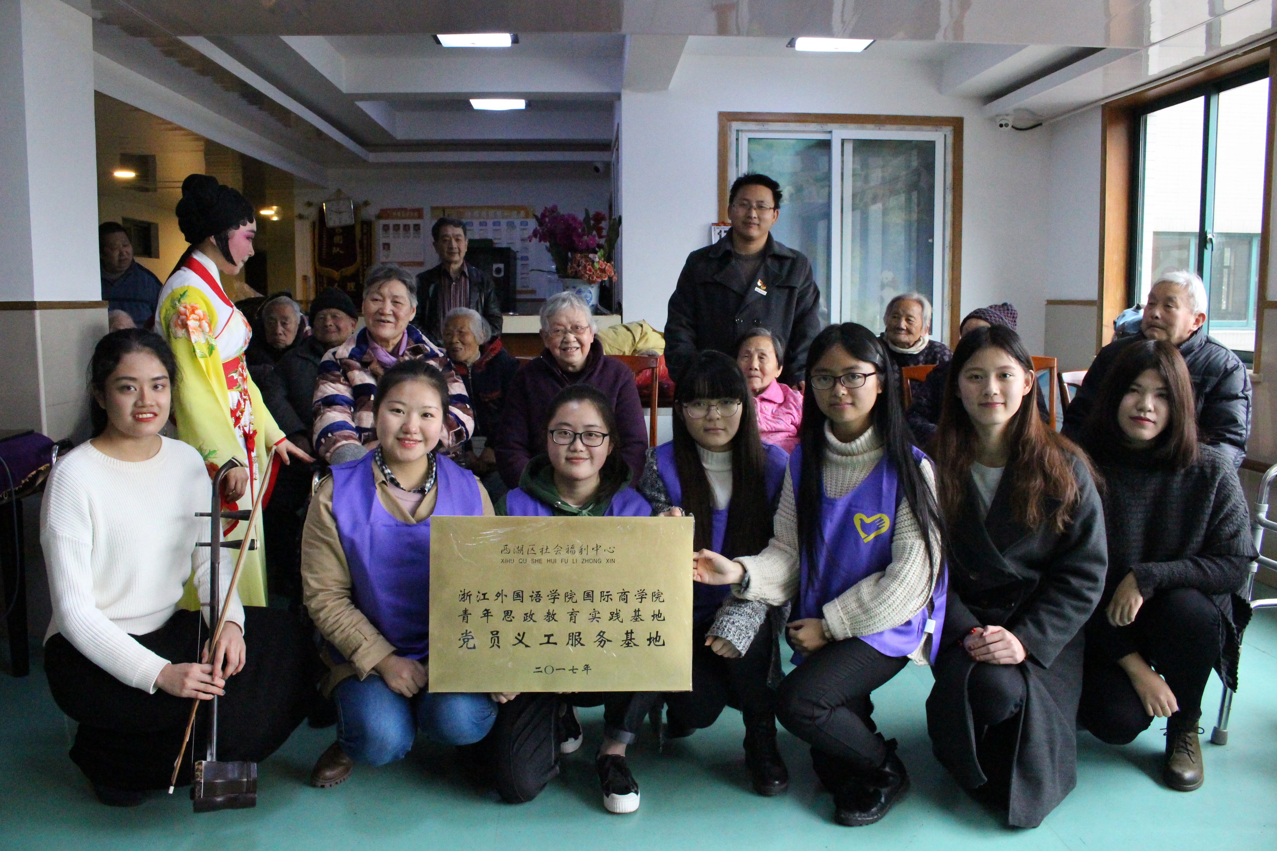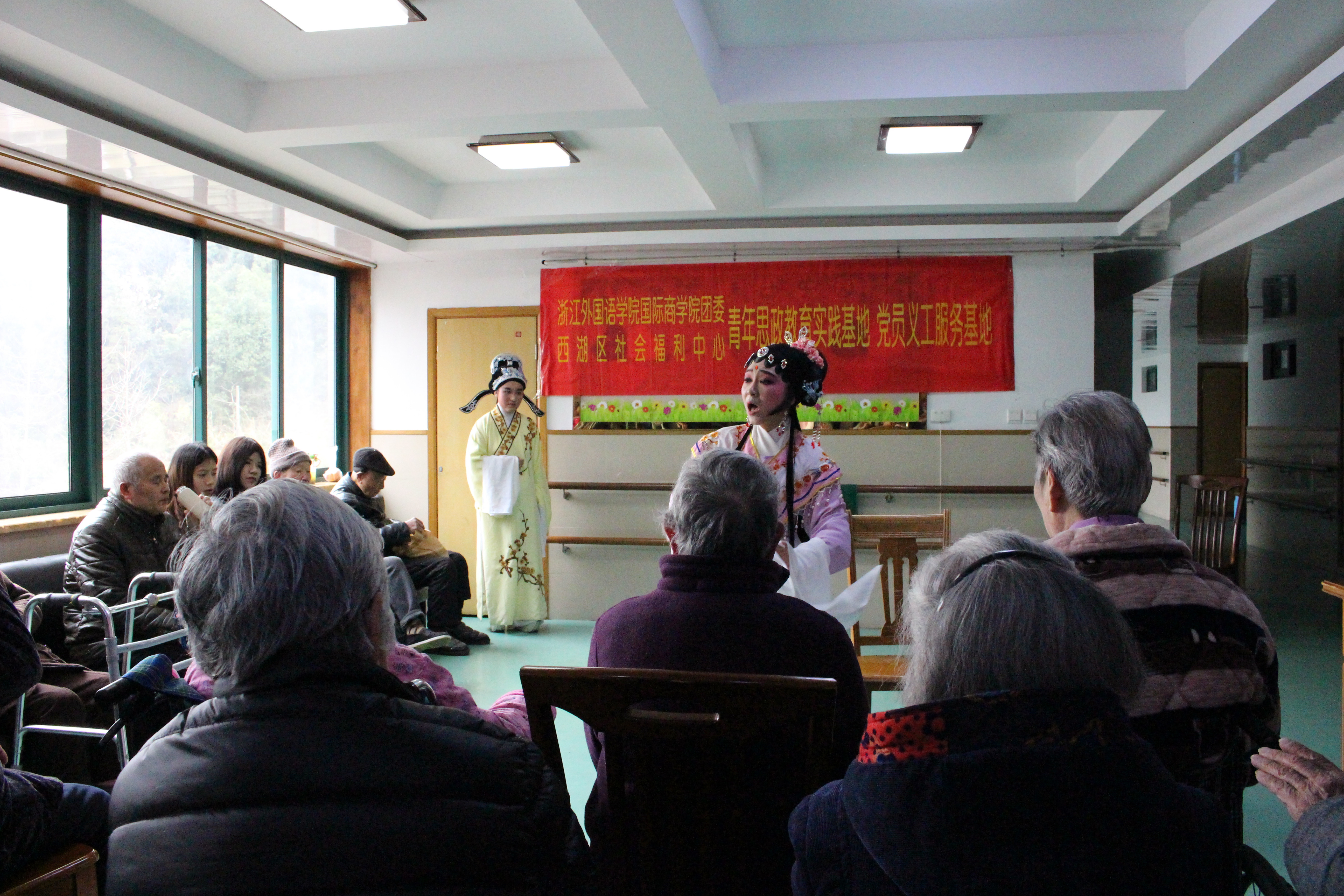 青年志愿者团队为福利中心老人展示了越剧演唱、器乐表演、合唱等节目,优美的歌声和曼妙的舞姿为老人们带来了欢笑和温暖,赢得了阵阵掌声。表演过程中,团委副书记周长喜和志愿者们同老人们热情洽谈,听老人们讲述他们青年时的故事,陪老人们闲话家常,让他们在互动中感受到了深切的关怀。最后,志愿者们和老人进行合影留念,依依不舍地告别。