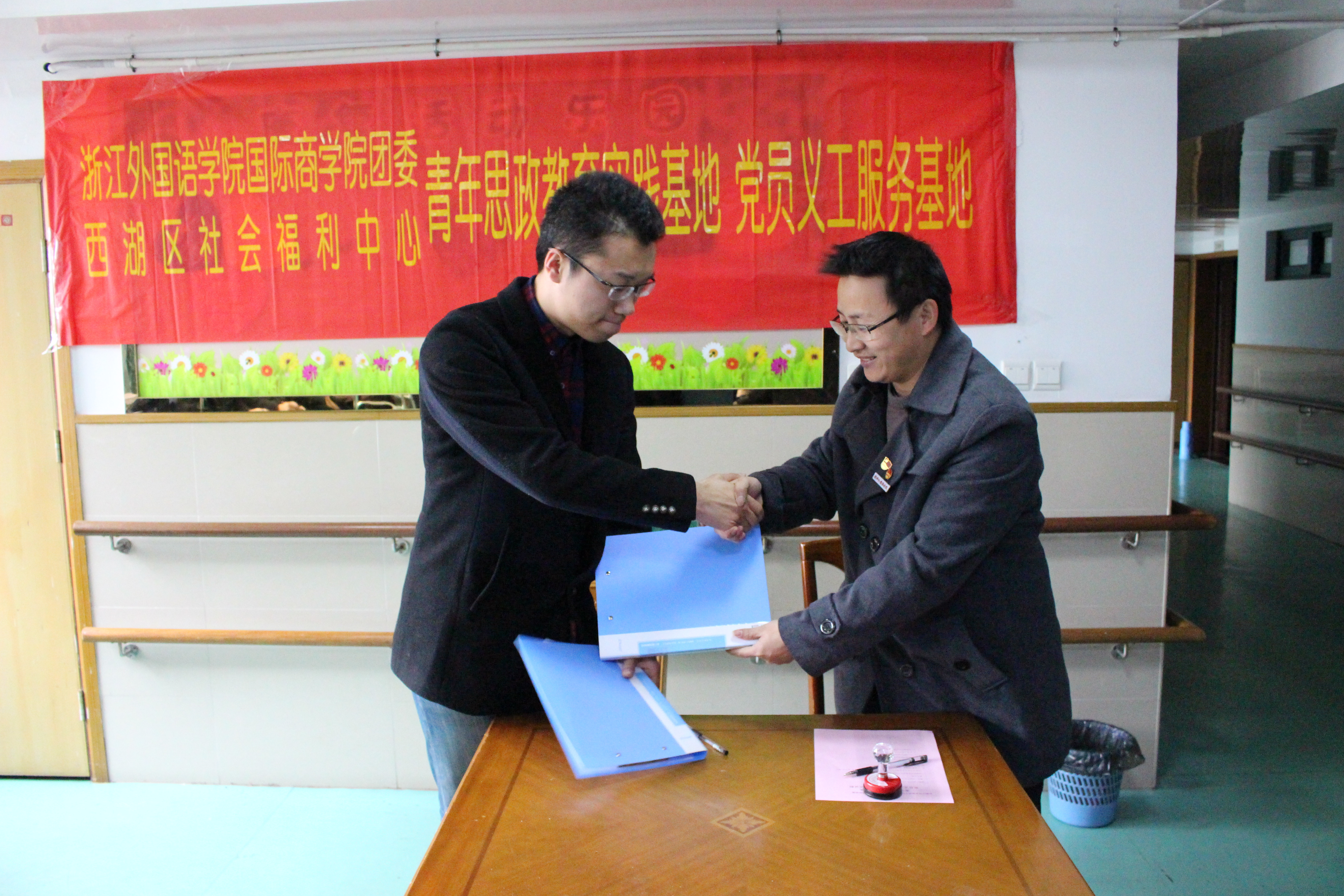 国际商学院团委与西湖区福利中心青年思政教育实践基地、党员义工服务基地”协议并进行基地掲碑仪式。会后,泥巴影视