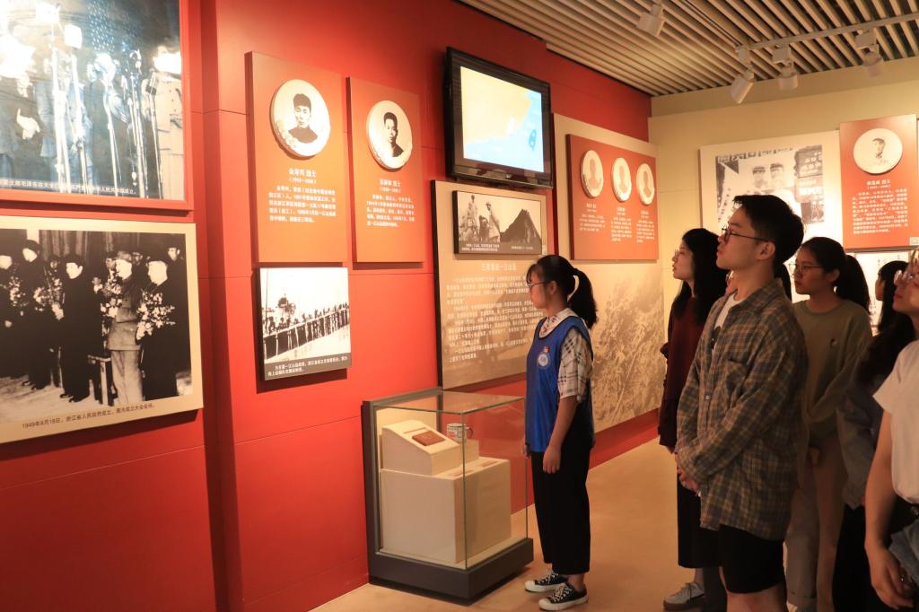 在瞻仰烈士纪念碑并敬献花环后,全体师生党员绕“浩气长存”主题雕塑一周,不时停住脚步深情凝视历史的痕迹,表达对革命先烈的崇高敬意。在烈士纪念碑前,深切缅怀革命先烈,重温入党誓词。在纪念馆内,一幅幅照片,一张张实物,将同学们的思绪带回到烽火连天的革命年代。革命先烈们的事迹体现出坚定的理想信念,在场师生深受感染。