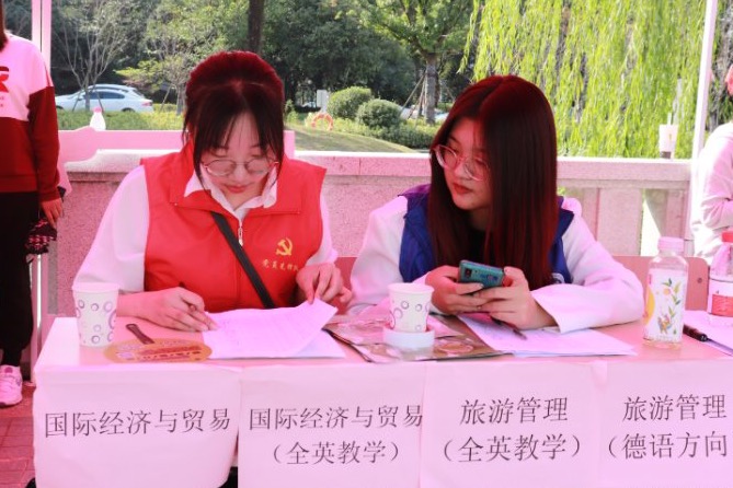除了在校外接站的先锋,还有在校内帮助新生熟悉校园的后卫。邢冬怡同学就是他们其中的一员,她来自17旅管1班。也曾是院团委的负责人。比之去年,校内的志愿者工作也越发的完善。据她所述,今年在接站环节的服务比以往更加精准,有专人对接新生,确保每一位到站的新生都能坐上校车,顺利到校。而且迈入校园的他们,脸上都洋溢着喜悦与青春。这一切都是志愿者们与学校努力的倒影。当被问到今天是否遇到了难题,她答到,没有大问题,今年跟往年的流程稍有不同,报到注册手续更加智能化,需要志愿者们提前熟悉流程,以便更好的服务新生。
