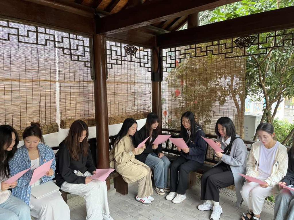参观纪念室后,同学们还开展了“青年读书会”活动,认真了解廉洁事迹,并用外语向当地居民讲述“廉”的故事,传扬廉洁清风。