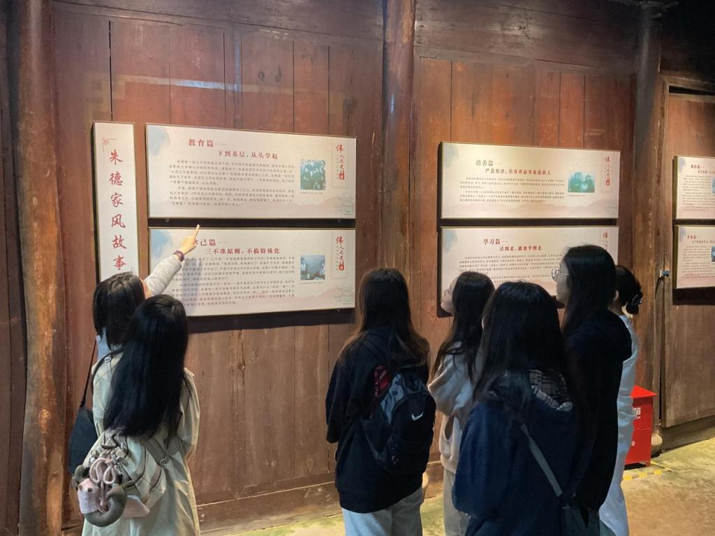 外桐坞村朱德纪念室以上世纪五六十年代朱德元帅四次到访茶村的渊源记事为契入点,依托画外桐坞景区的自然人文资源,对朱德元帅的纪律作风、家风故事和中纪委风云政绩等内容进行充分挖掘和整合提炼。同学们通过珍贵的历史照片、文字资料和厚重的历史文物,对朱德同志为党和人民事业不懈奋斗的光辉一生和中国革命的艰难历程有了更深刻的认识。