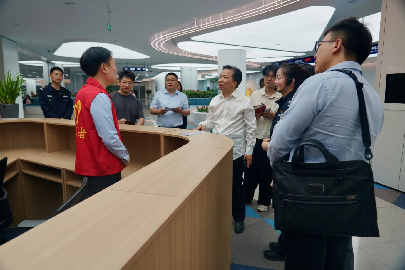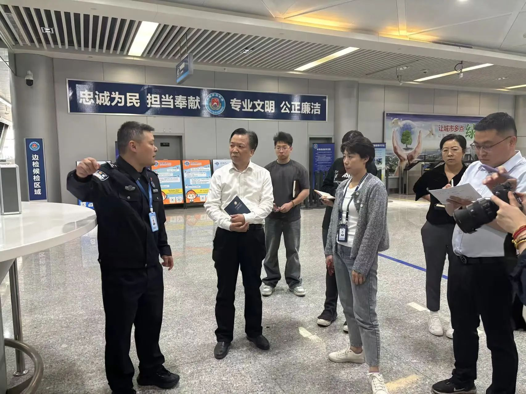调研团一行实地走访了义乌机场、义乌高铁站、义乌市出入境服务大厅、鸡鸣山/词林社区、银都酒店和顺风国际旅行社等。