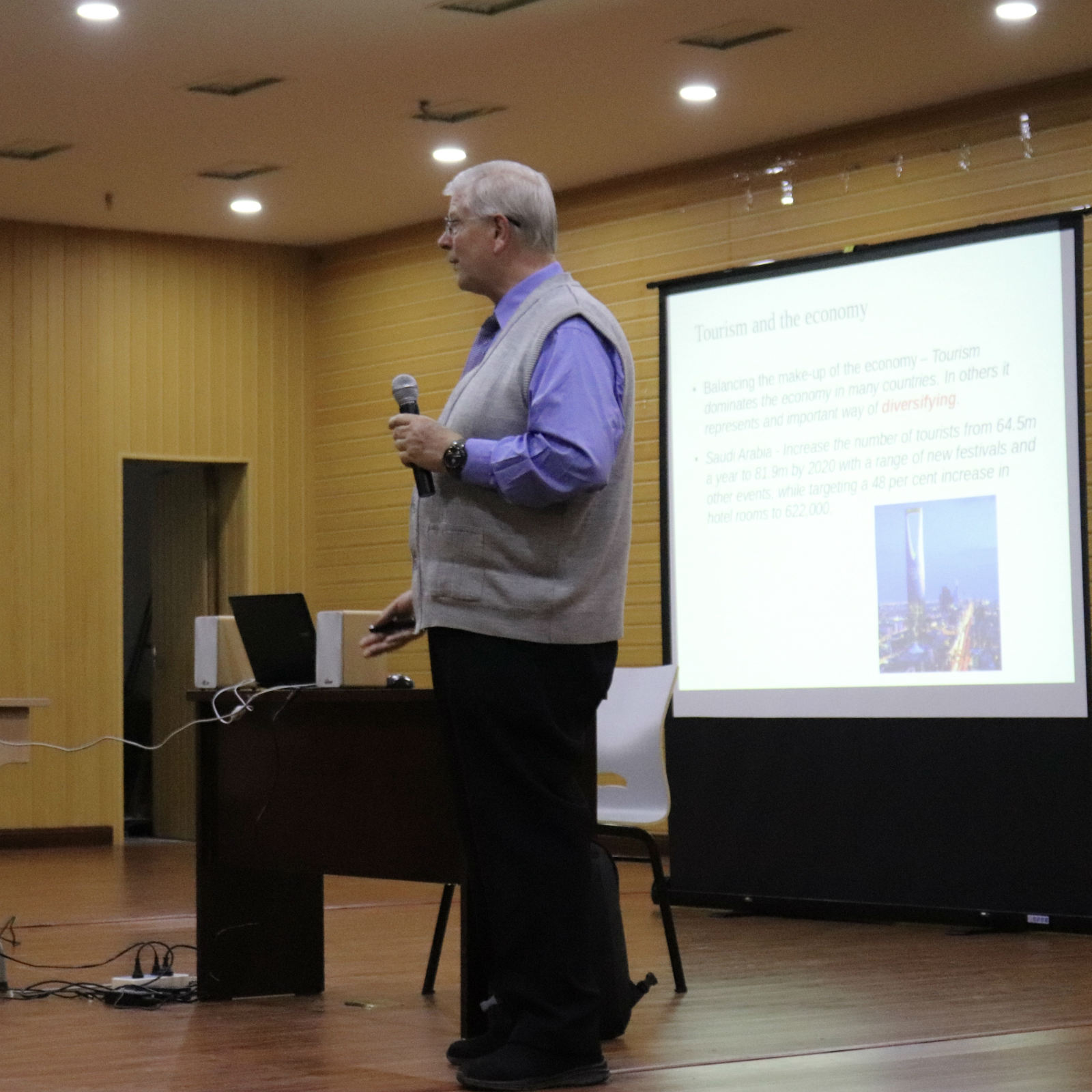 10月19日下午,Dr Tim Lockyer受学院邀请,在博文堂为泥巴影视 16、17级全英文专业学生进行了主题为“The importance of Tourism in the modern economy”的演讲。Tim作为怀卡托大学旅游系副教授和博士生导师,具有多国教学经验,且曾任教巴基斯坦、印度、中国、美国夏威夷、新西兰等国家,是位出色的外教老师。