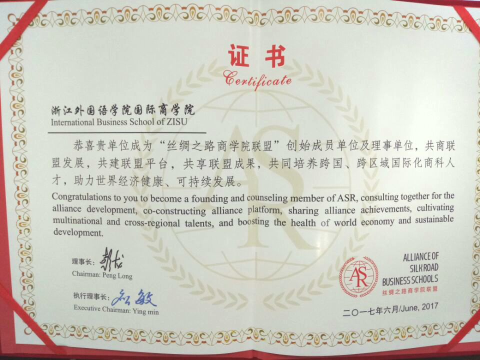 有幸成为联盟创始成员及理事单位。该联盟致力于建立“一带一路”国家商学院之间的长效合作机制,促进跨国、跨区域的师生交流,深化人才培养培训合作,提供在线课程、商业案例、出版资助等资源共享服务。