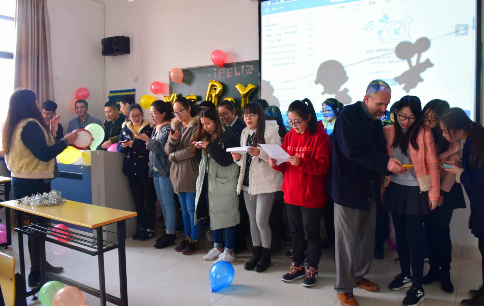 本次师生联欢会增强了我校中西文化的交流,展现了我校师生的艺术风采,拉进了同学们与外教的友谊,同时也使外教在异国他乡感受到了浓浓的关怀。