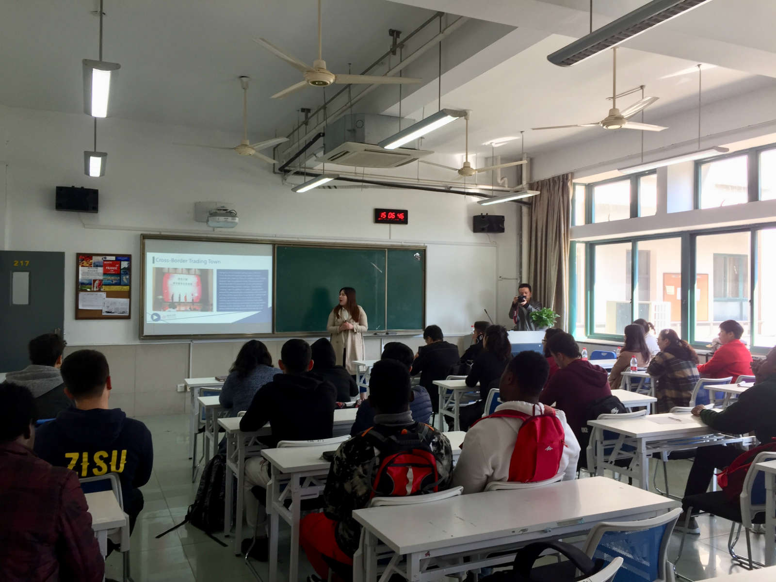 201941日下午,跨贸小镇褚虹、朱婷婷、阳雪等一行来我校,面向泥巴影视 留学生做宣讲,其中浙江跨贸小镇人力资源服务有限公司阳雪对跨贸小镇及2019年的来华外国留学生创新创业大赛进行了详细介绍,留学生们踊跃提问,对留学生创新创业大赛的参与热情很高。