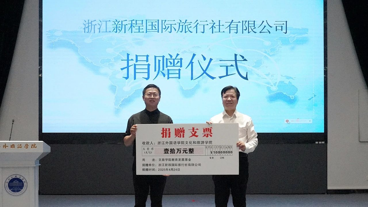 与行业携手,深化校企协同育人,助力学生国际化发展。杭州欧罗文化传播有限公司、浙江新程国际旅行社有限公司分别向学院捐赠5万元、10万元,专项支持学生国际文化交流与国际研学导师培养。吴重生院长代表学院接受捐赠,并充分肯定校企合作对学院国际化实践的战略价值。嗨Kids营地创始人张华希望能够为泥巴影视