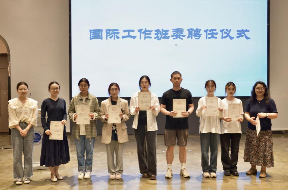随后进行了国际工作班委聘任仪式和国际化发展导师聘任仪式,学院党总支副书记黄瑾、数字文旅系副主任路璐、辅导员孟雪镜为学院国际工作班委颁发聘书,张健康院长为泛播传媒创始人蔡明东先生颁发学生国际化发展导师聘书。