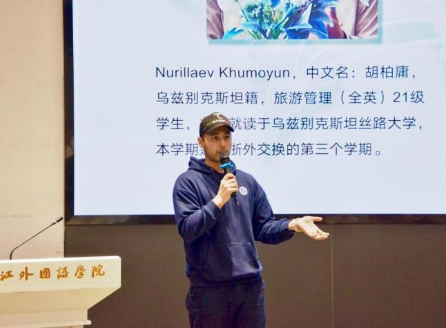 两位乌兹别克斯坦的留学生热情幽默地表达了对中国的喜爱,同时表示,通过国际交流,才能理解不同语言、不同文化,了解世界的优点和缺点。他们表示,非常荣幸来到中国,非常喜欢浙外开放、包容的氛围。
